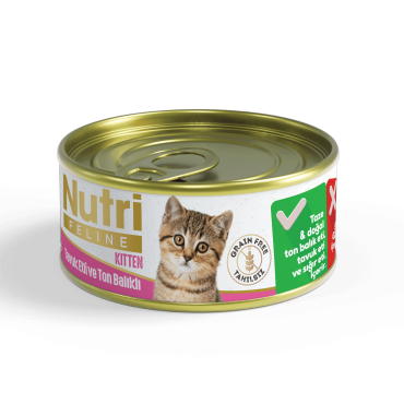 Tuna (%26), Chicken (%15), Liver (%10) vitamins and minerals, taurin 200 mg/kg.